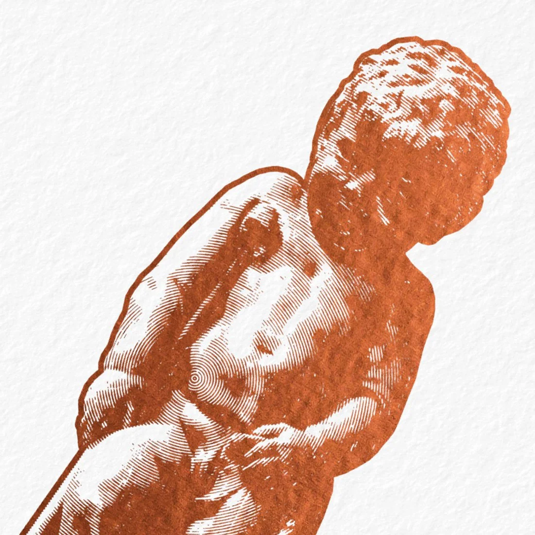 Russel Institute Baby with Crutch - Copper on White is printed on 250gsm sustainably sourced bond card, velvet laminated, and copper foiled. Each print is signed by Dave Muir and features a ‘Paisley Born and Thread’ embossed stamp to ensure you are buying a true original.